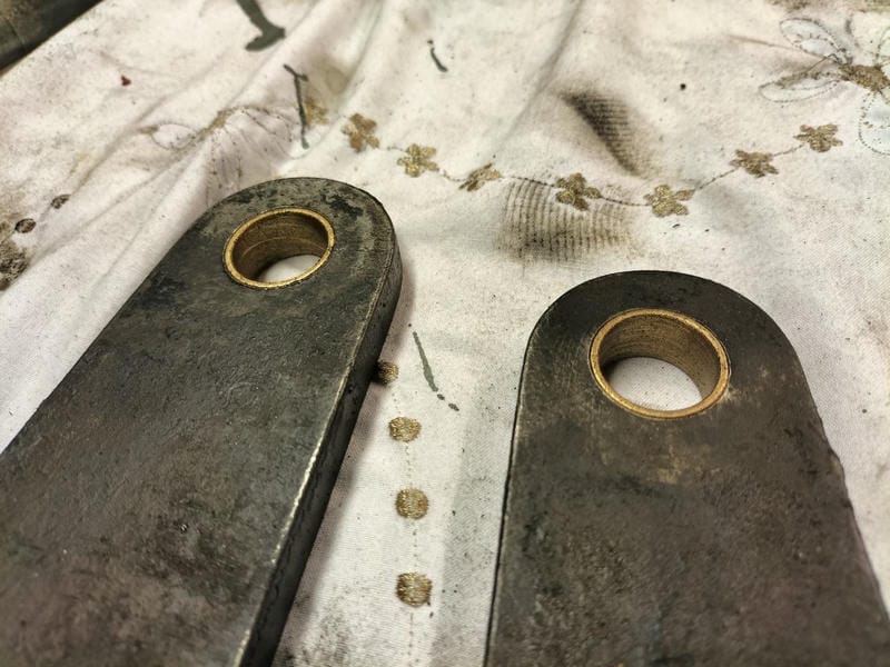 Work on bushing the hangers was started while the cross shafts were away, this proved to be more difficult than expected as the hangers were made from flame cut steel.